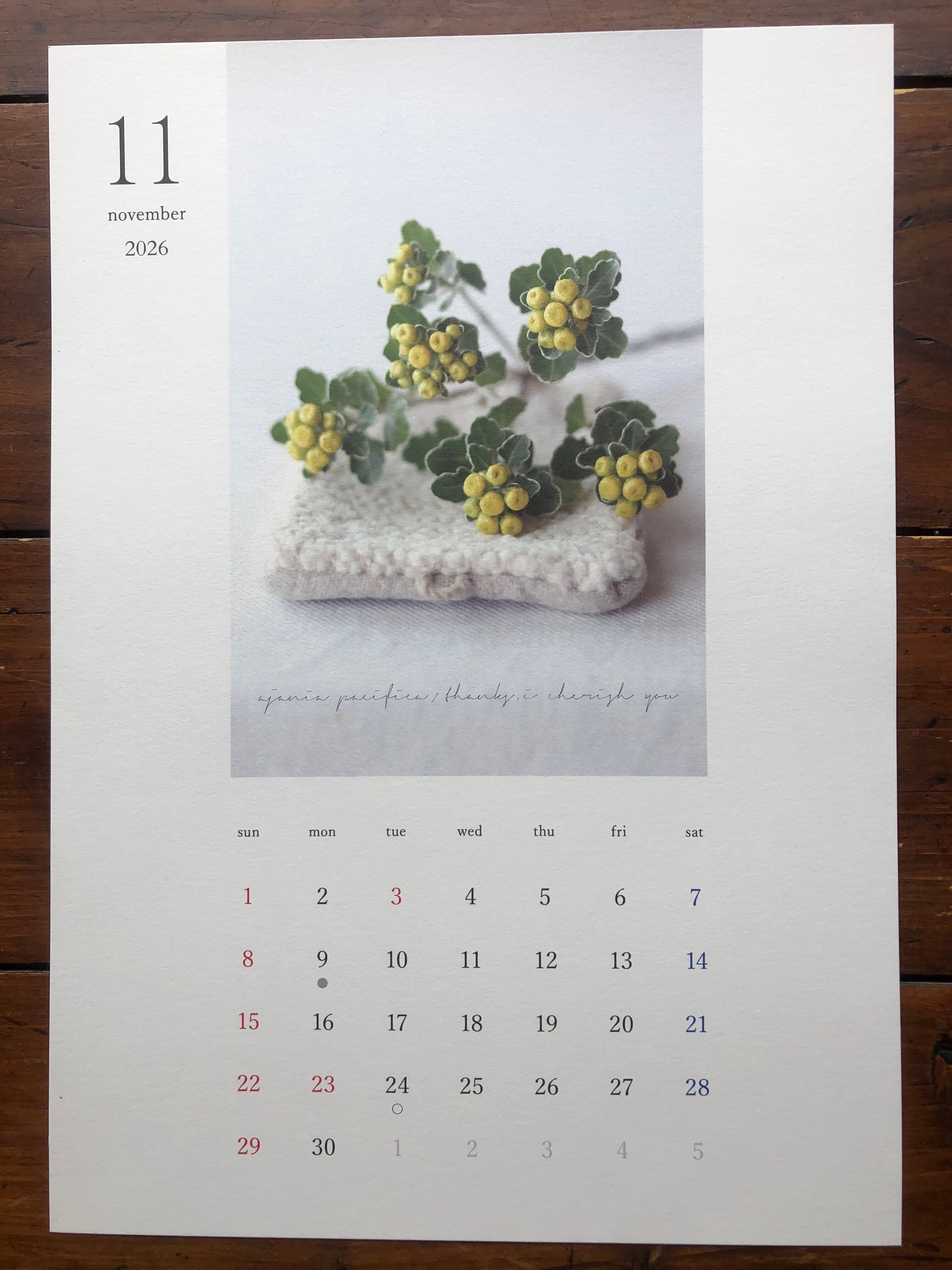 madoka isaji カレンダー〜植物と寄り添う 2026〜 A4ポスタータイプ